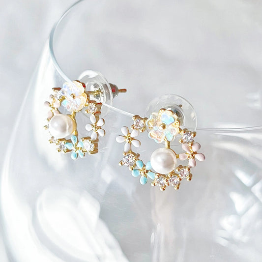 14ct Gold plated Fresh Water Pearl Pink Planet Earrings