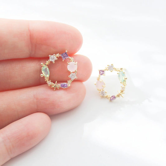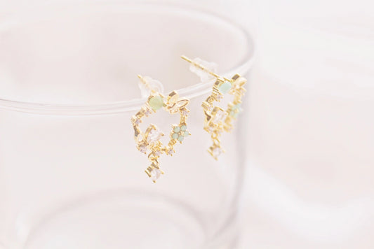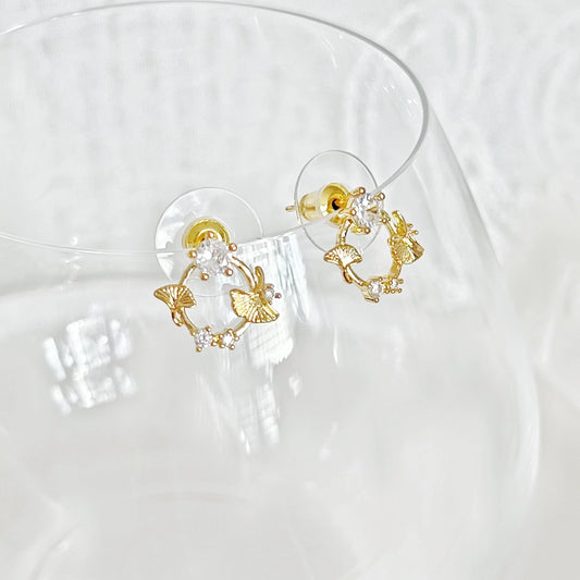 Gold Butterfly Flower Earrings - Flower Wreath & Mini Drop